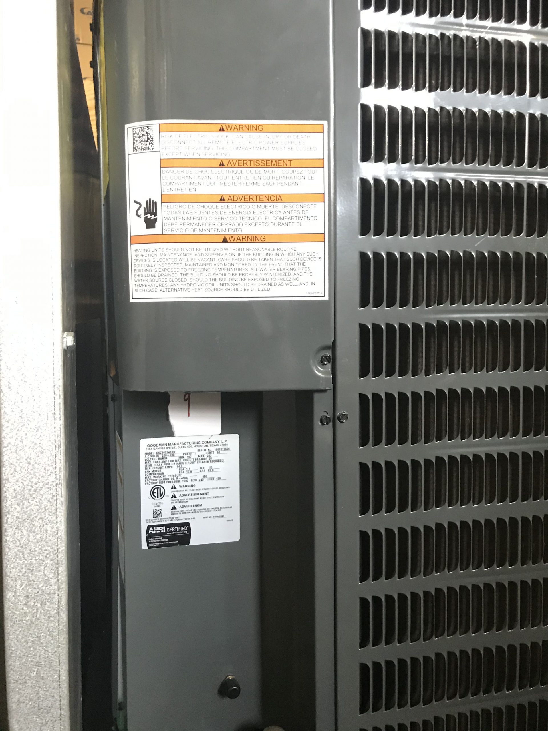 - AHRI Certified; ETL Listed